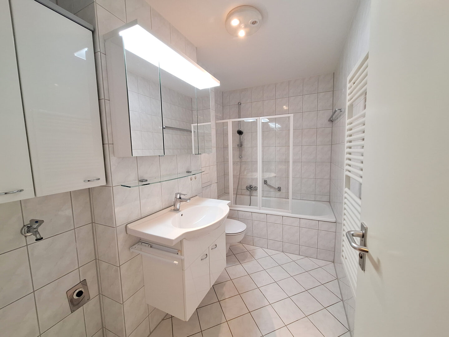- Bad mit Badewanne, Waschbecken, WC, Handtuchheizung, Waschmaschinenanschluss, Spiegelschrank