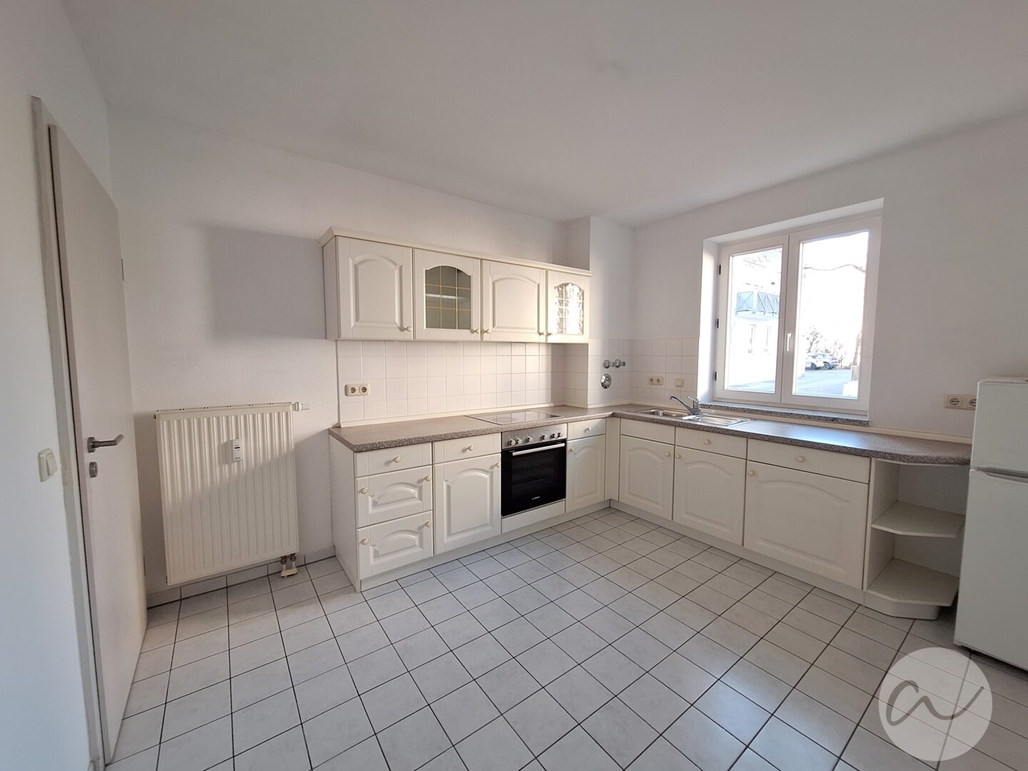 Die Wohnküche - derzeit mit einer weißen Landhausküche ausgestattet - bietet Platz für eine Eckbank oder Tisch und lädt zum gemeinsamen Kochen ein. Eine praktische Speis sorgt für zusätzlichen Stauraum.