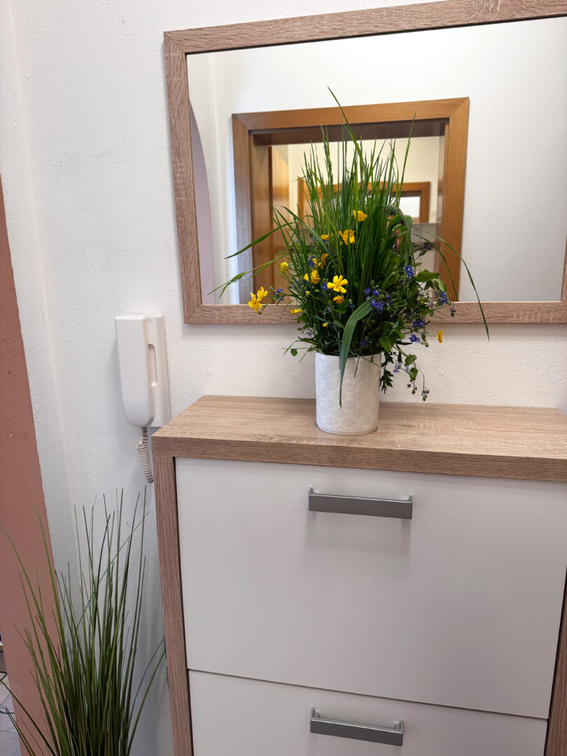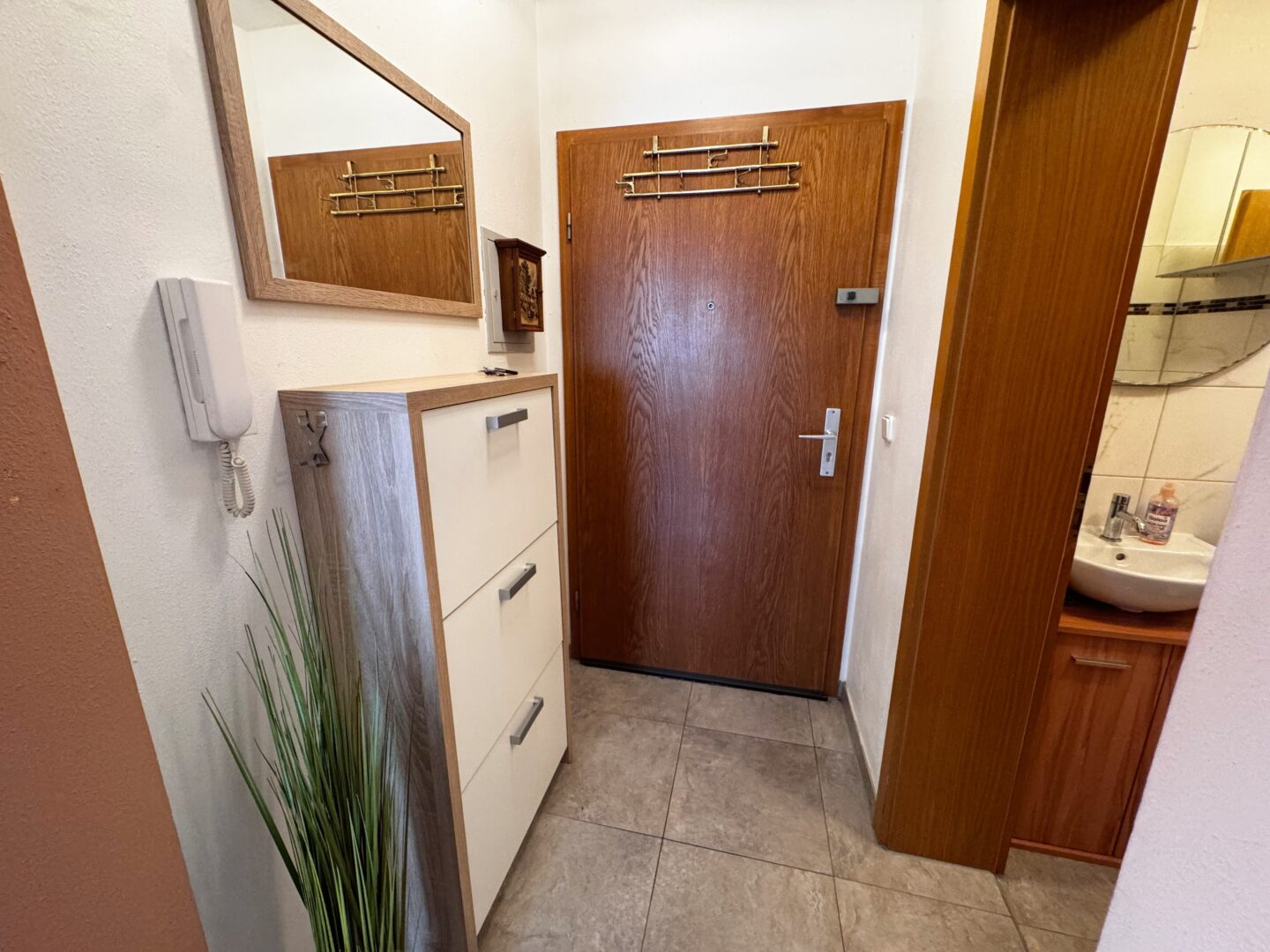 Ein kleiner, abgetrennter Dielenbereich führt zu den beiden ruhig gelegenen Schlafzimmern. Ein praktischer Einbauschrank bietet zusätzlichen Stauraum für Garderobe und Haushaltsutensilien.
