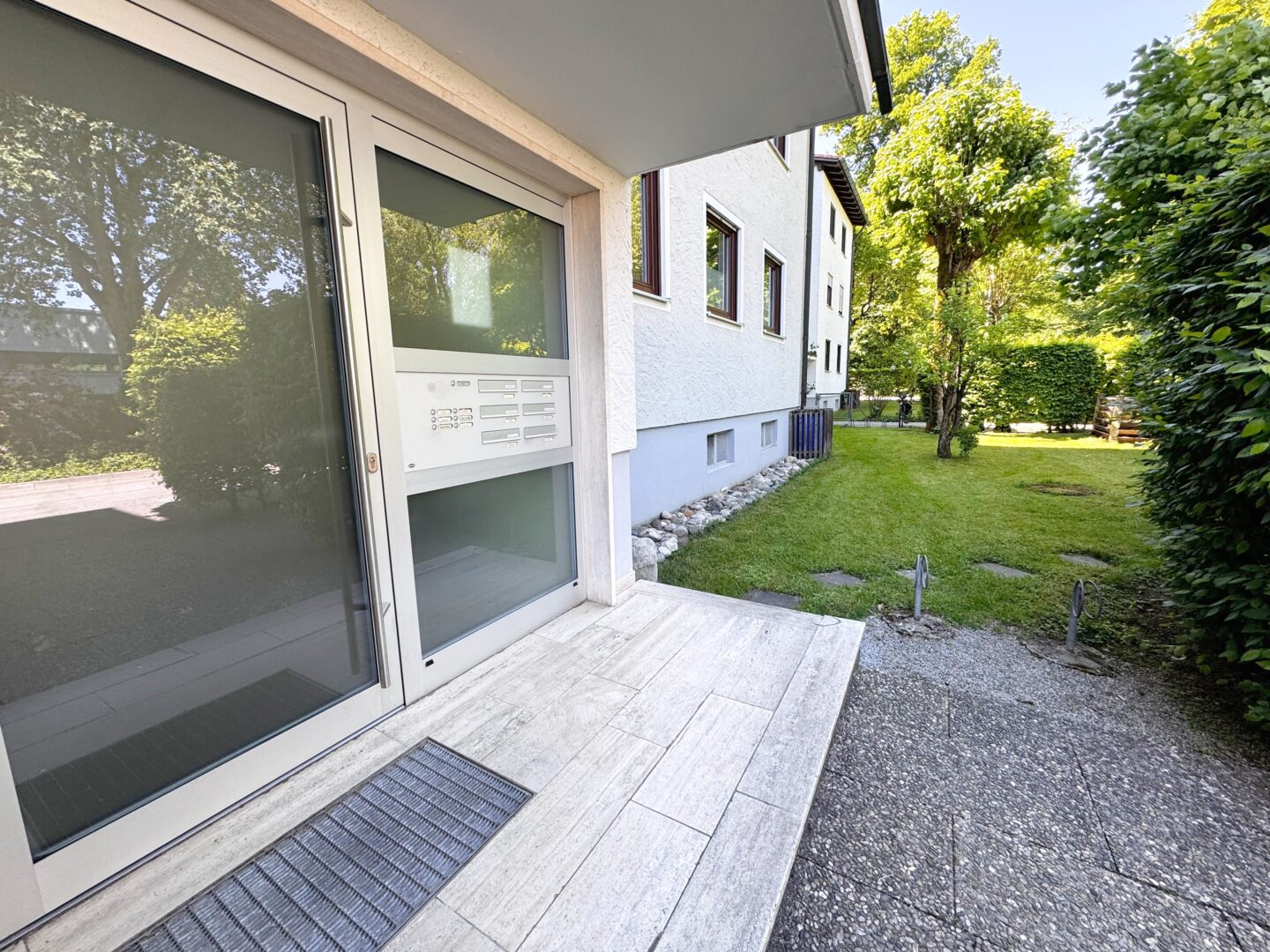 Die Wohnung befindet sich in einer verkehrsberuhigten Spielstraße, nur wenige Schritte vom Mangfallkanal entfernt. Das angrenzende Spazier- und Radwegenetz bietet Spaziergängern, Joggern und Radfahrern Erholung und Sportmöglichkeiten direkt vor der Haustür.