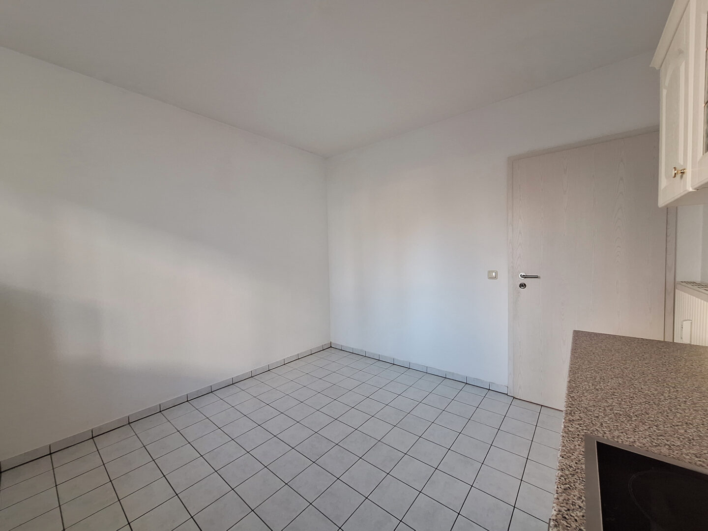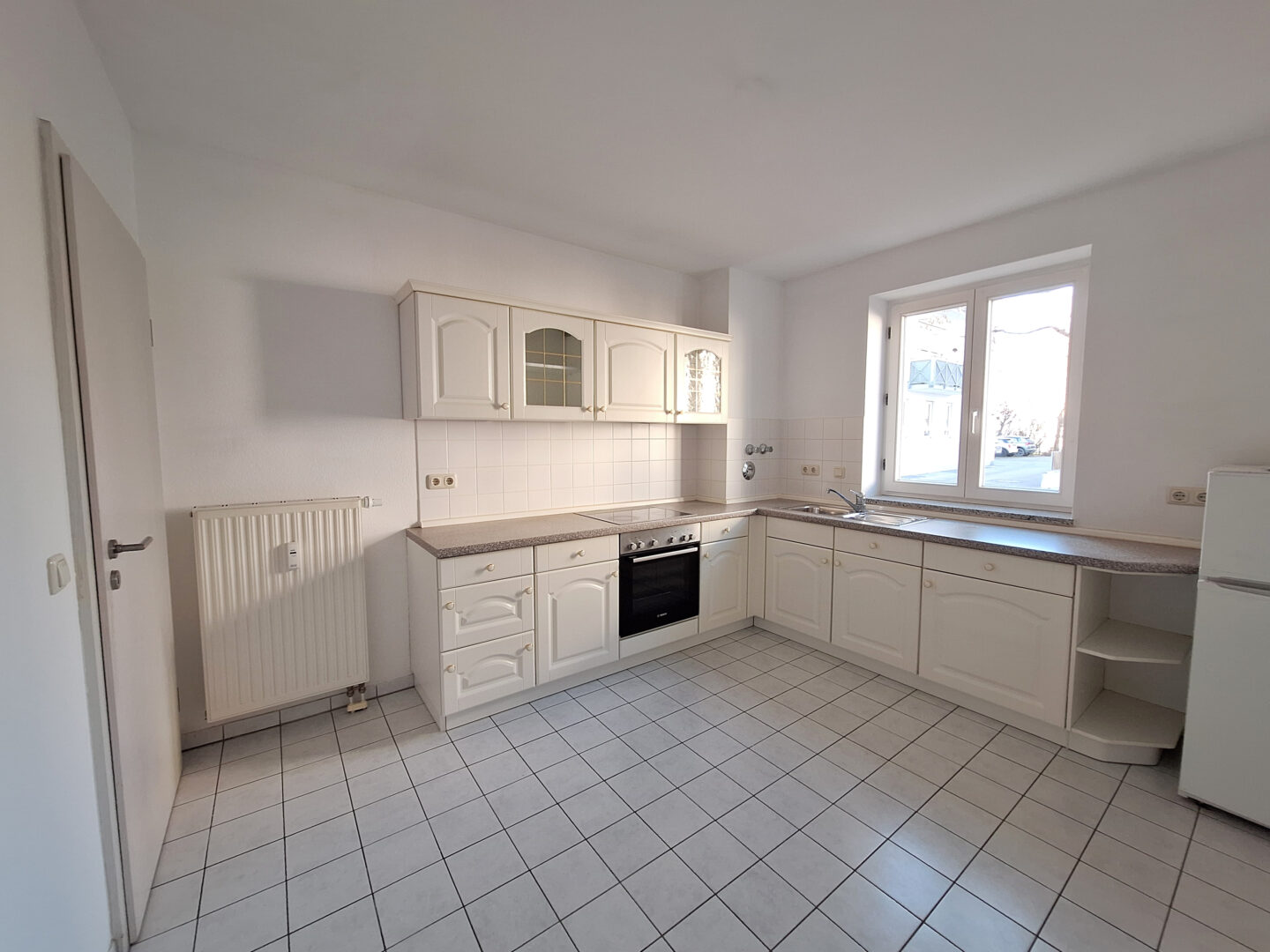 Die Wohnküche - derzeit mit einer weißen Landhausküche ausgestattet - bietet Platz für eine Eckbank oder Tisch und lädt zum gemeinsamen Kochen ein. Eine praktische Speis sorgt für zusätzlichen Stauraum.