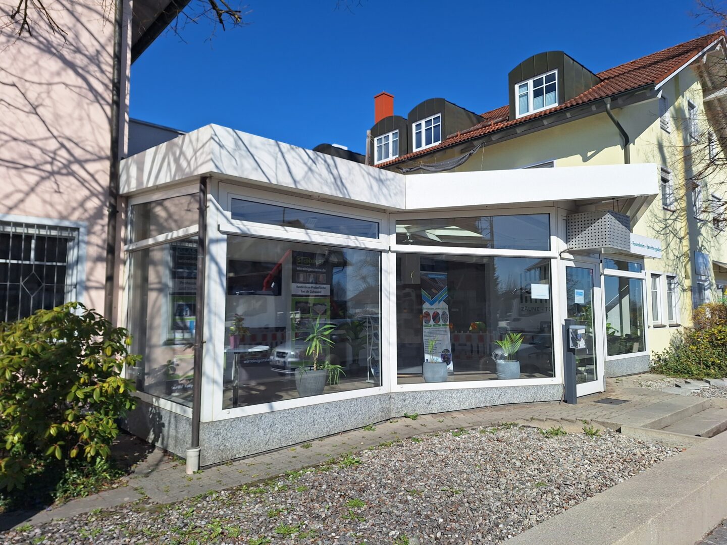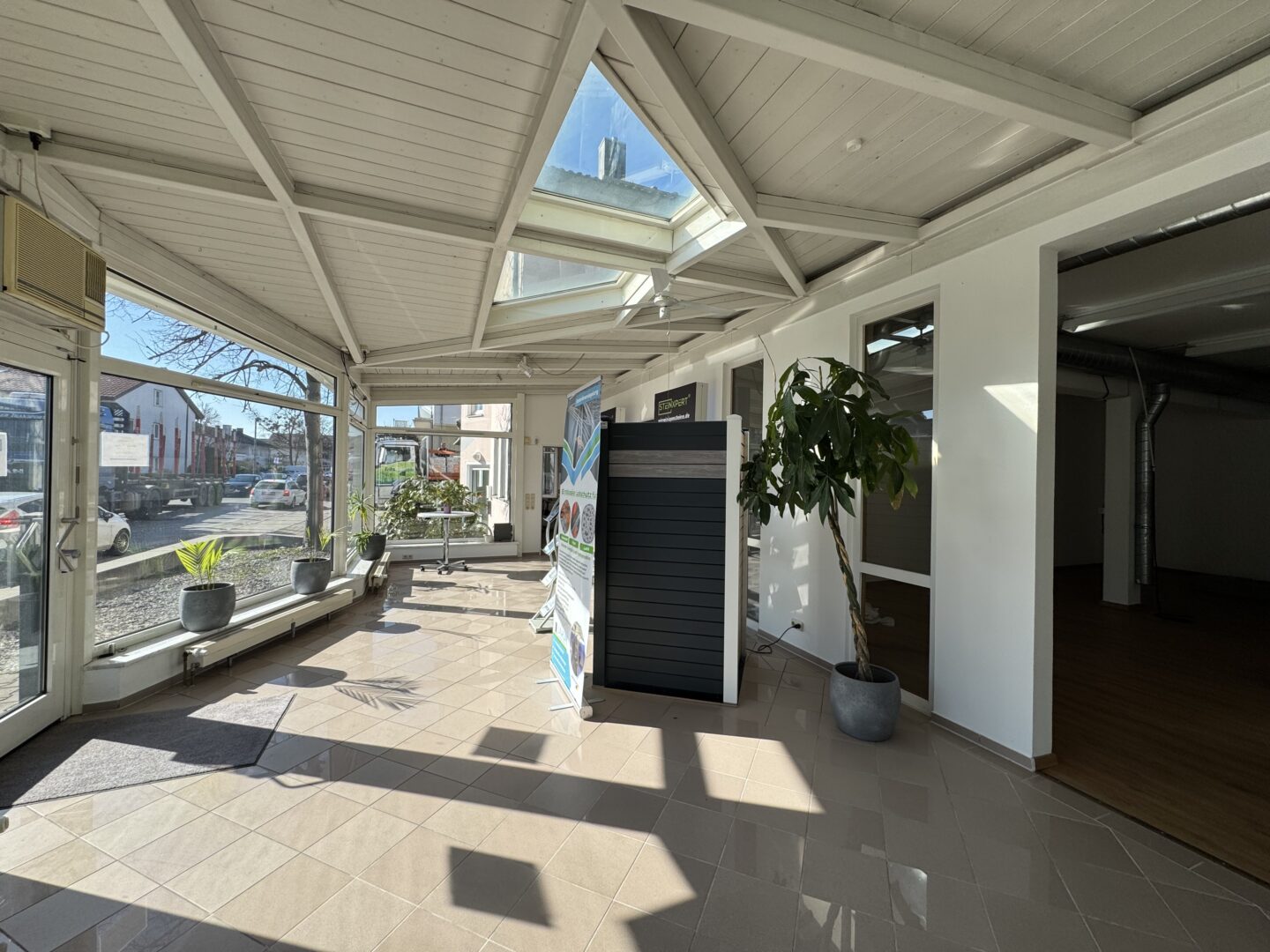 Zur Straße ausgerichtet und gut sichtbar befindet sich ein ca. 45m² großer, lichtdurchfluteter Showroom mit Schaufenstern.